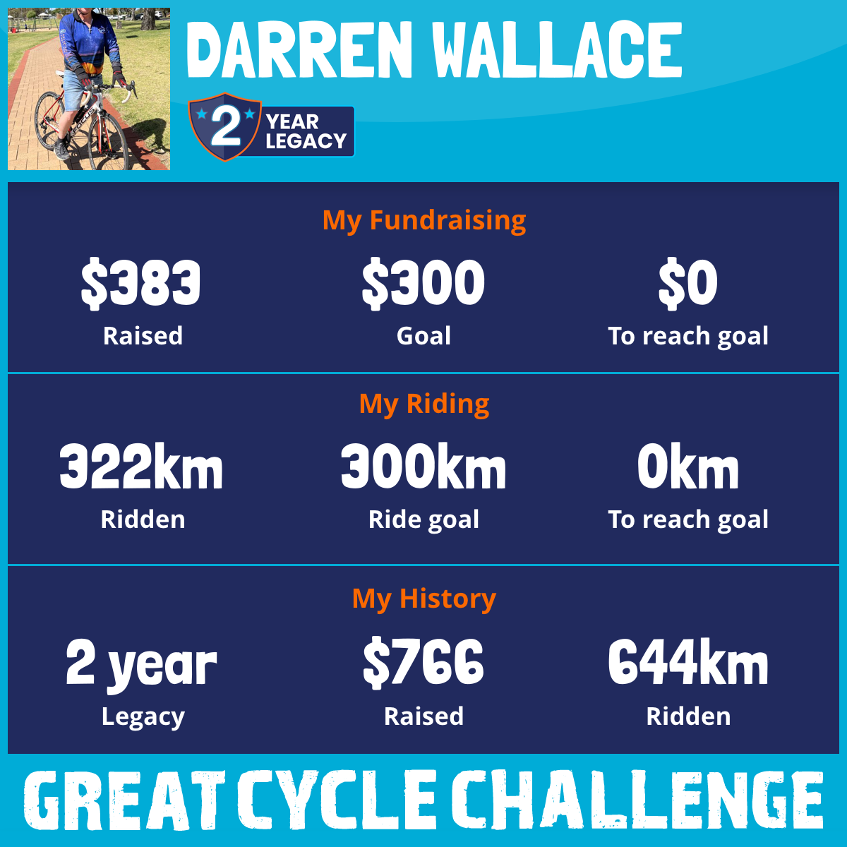 322 km Ridden$383 Raised2026