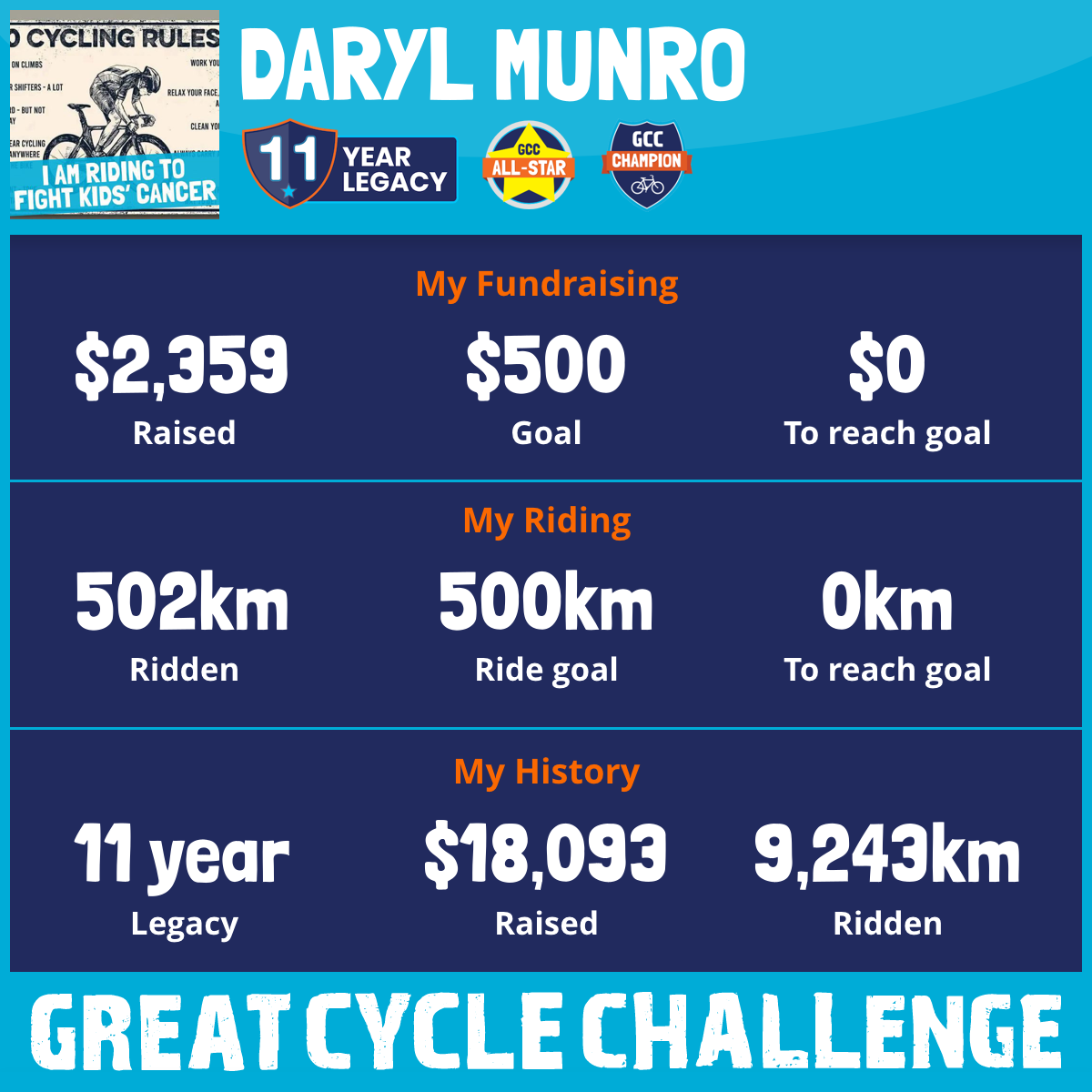 And so I am riding and raising funds to support the Children's Medical Research Institute to continue their work into the prevention, diagnosis, treatment and finding a cure for childhood cancer.