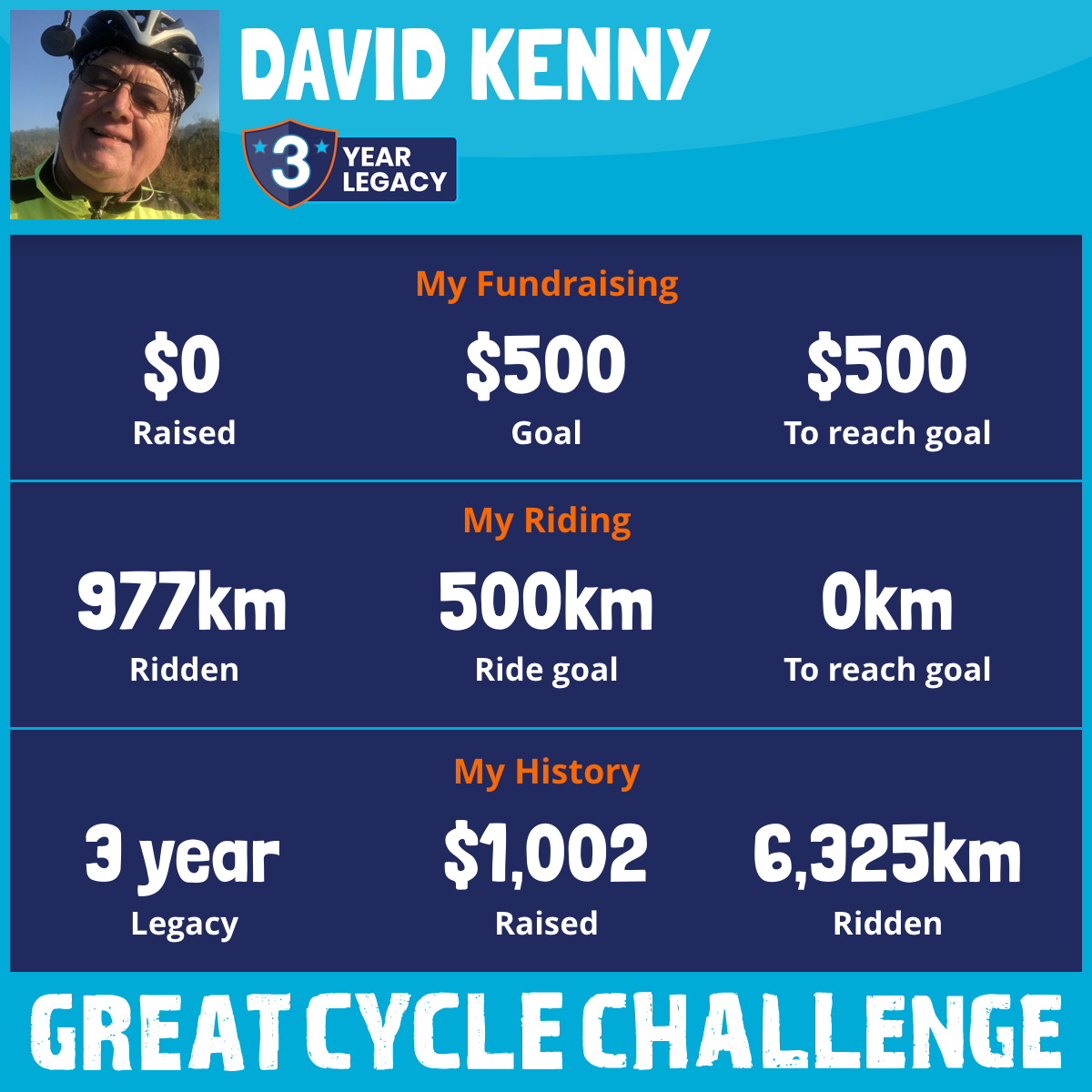 I am riding 500 km in memory of Micheal Kenny. Please sponsor me and support my challenge to fight kids' cancer and save little lives.