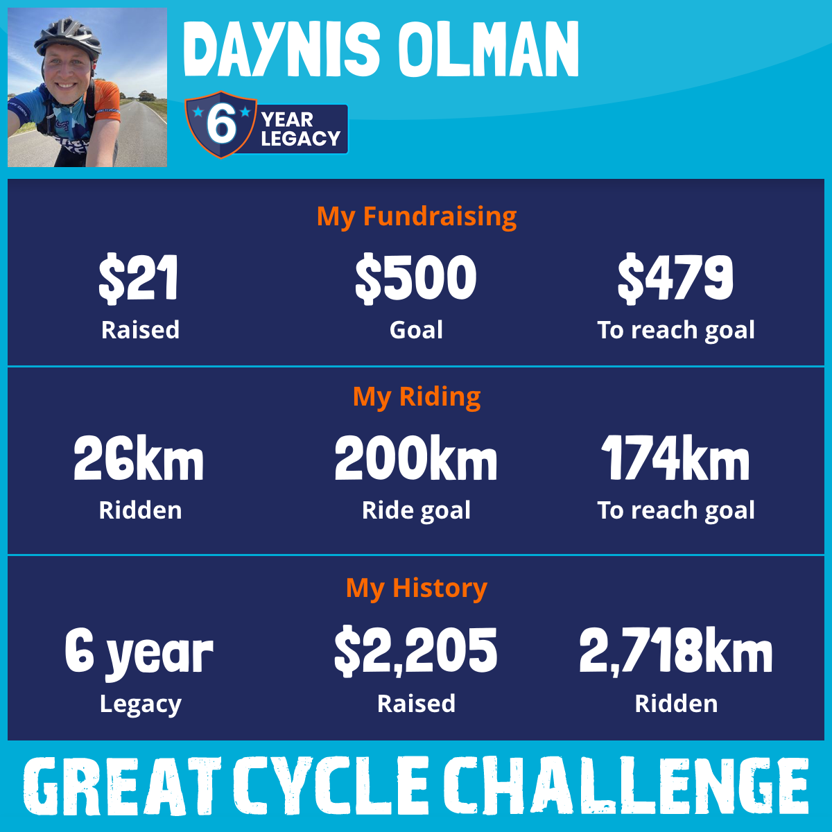 1,834 km Ridden$1,798 Raised2021