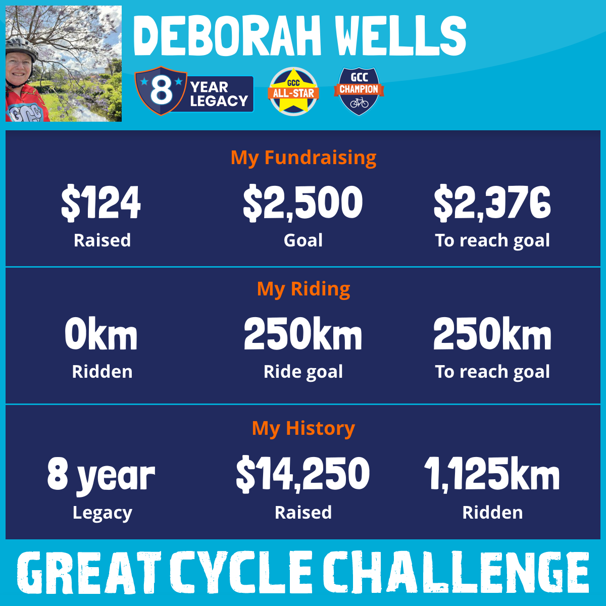 And so I am riding and raising funds to support the Children's Medical Research Institute to continue their work into the prevention, diagnosis, treatment and finding a cure for childhood cancer.