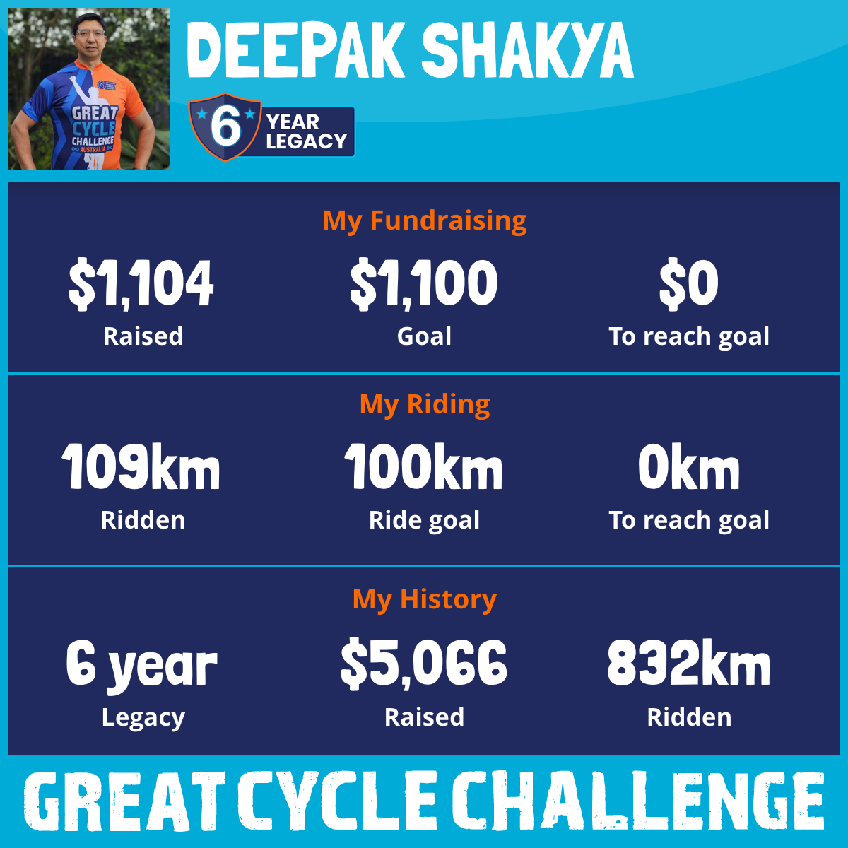 109 km Ridden$1,104 Raised2026