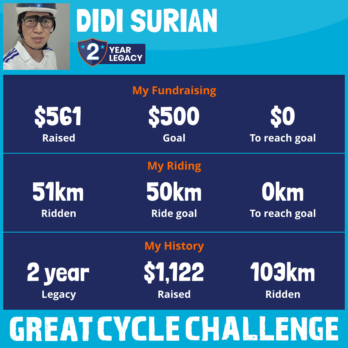 51 km Ridden$561 Raised2025