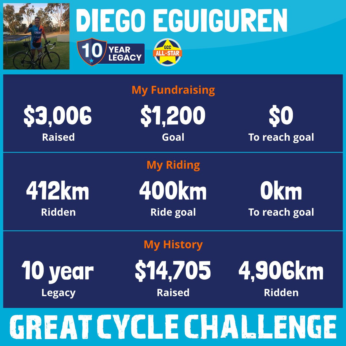 412 km Ridden$3,006 Raised2026