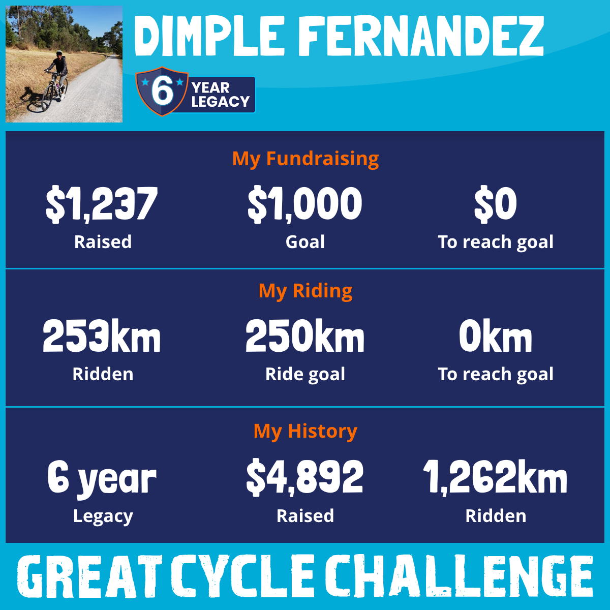 253 km Ridden$1,237 Raised2026