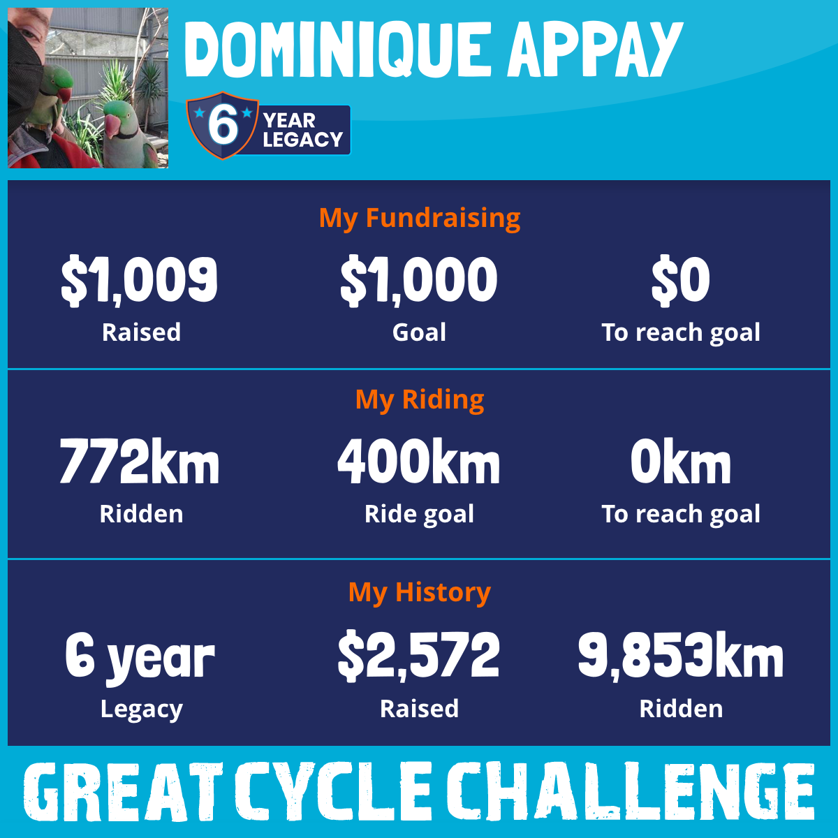 And so I am riding and raising funds to support the Children's Medical Research Institute to continue their work into the prevention, diagnosis, treatment and finding a cure for childhood cancer.