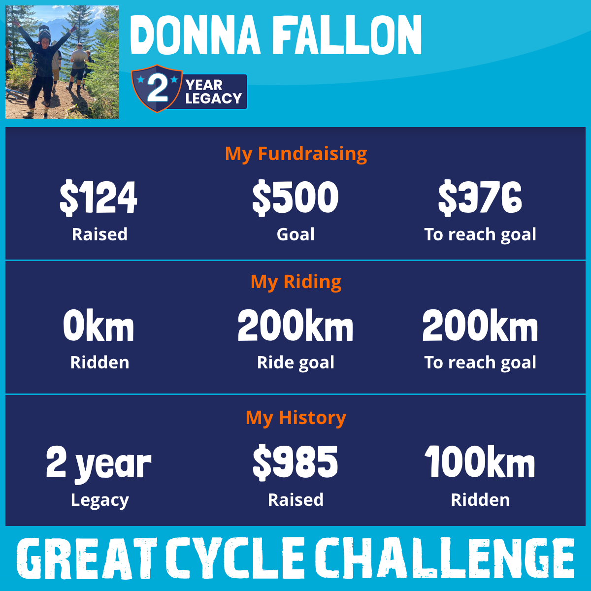 100 km Ridden$861 Raised2019