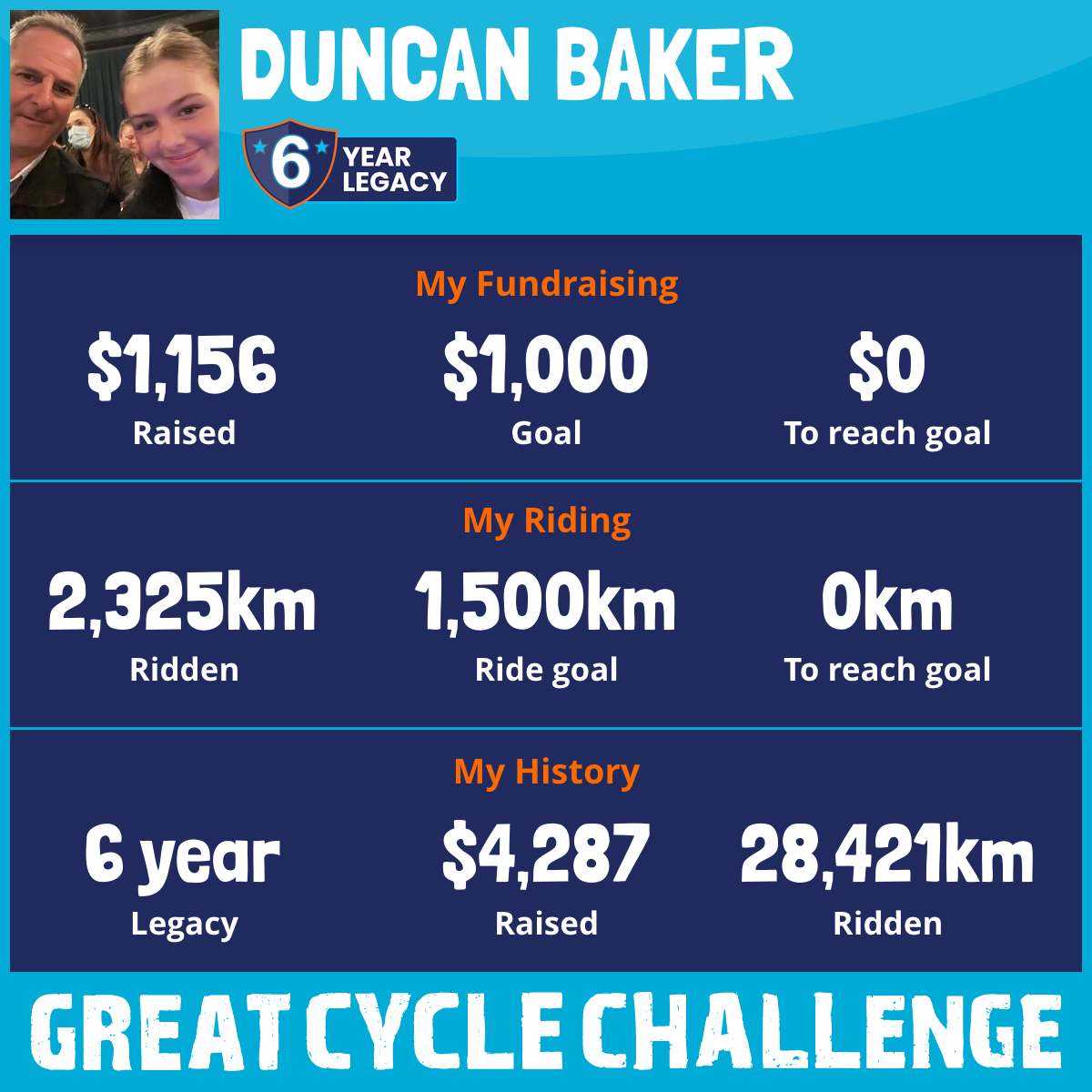 2,325 km Ridden$1,156 Raised2026