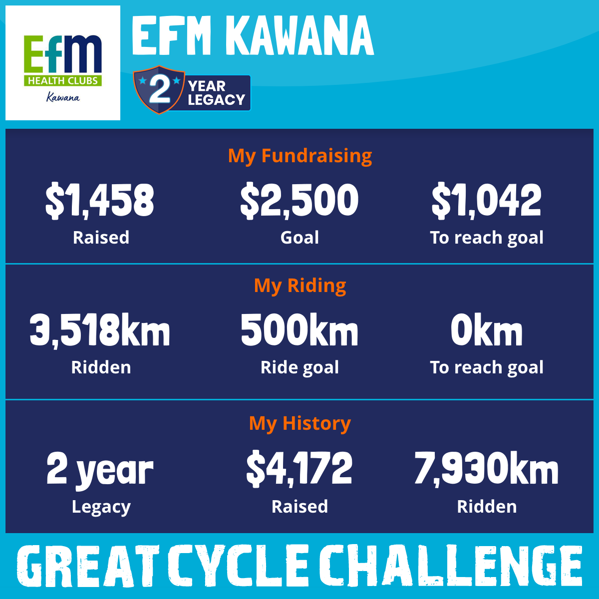 3,518 km Ridden$1,458 Raised2026