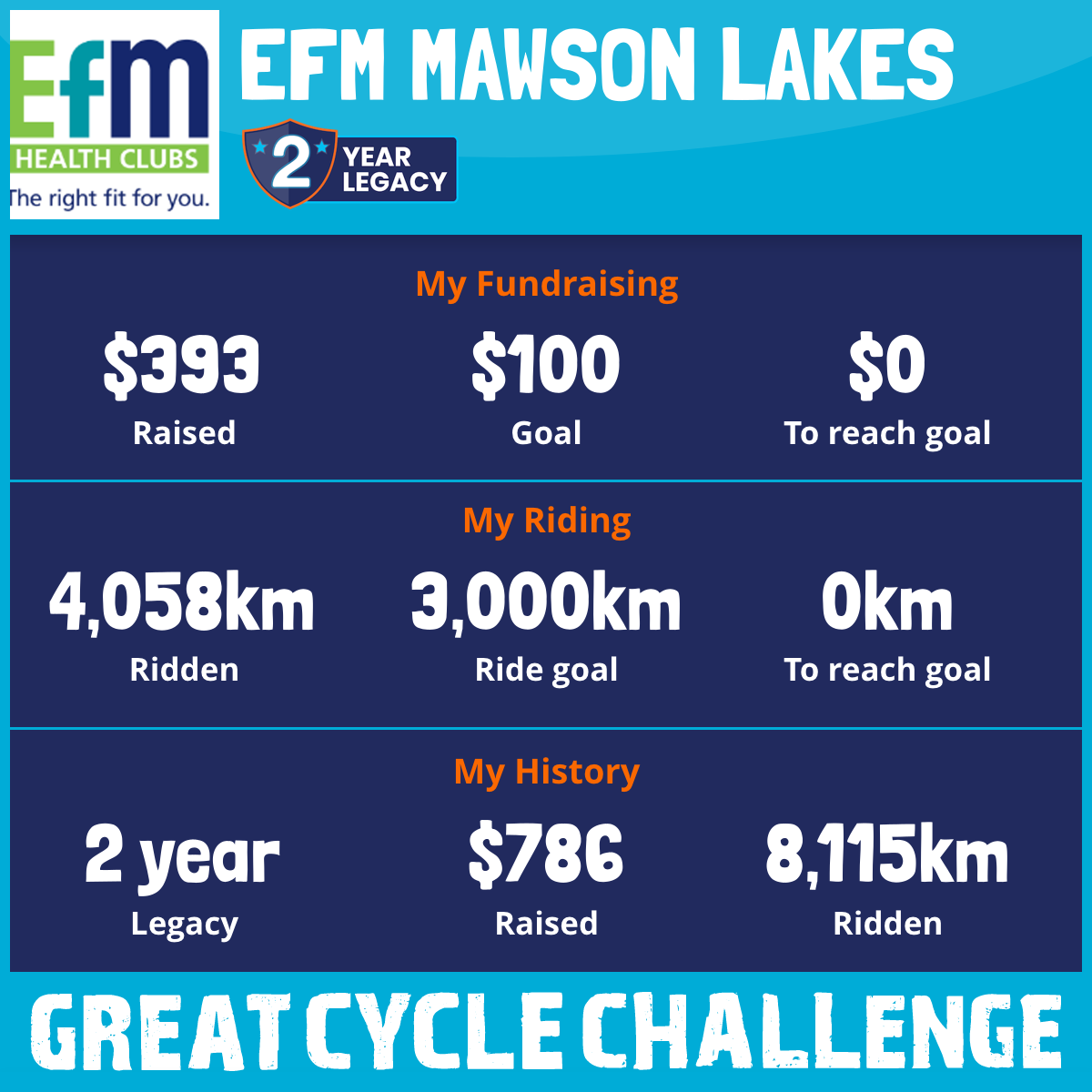 4,058 km Ridden$393 Raised2026