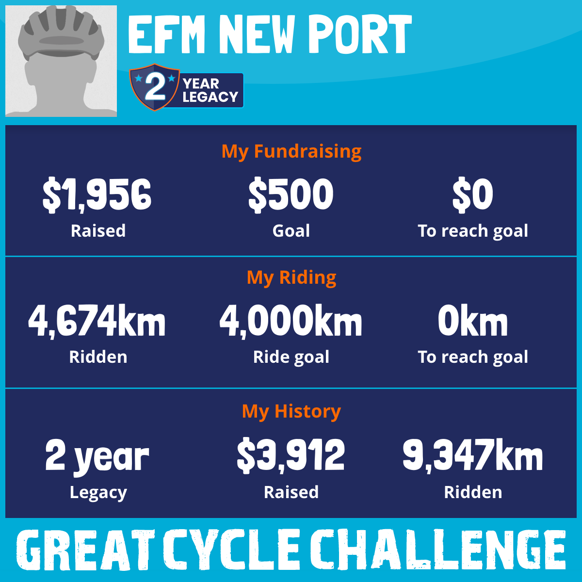 4,674 km Ridden$1,956 Raised2026