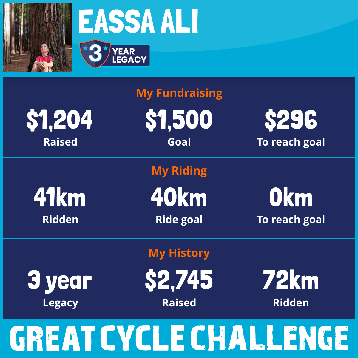 And so I am riding and raising funds to support the Children's Medical Research Institute to continue their work into the prevention, diagnosis, treatment and finding a cure for childhood cancer.
