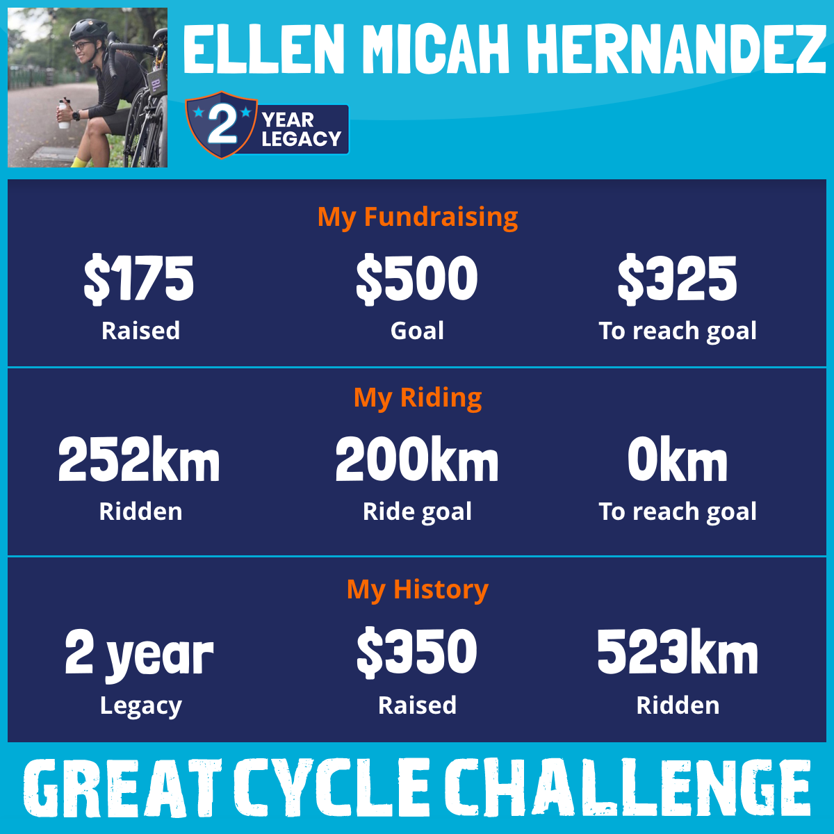 And so I am riding and raising funds to support the Children's Medical Research Institute to continue their work into the prevention, diagnosis, treatment and finding a cure for childhood cancer.