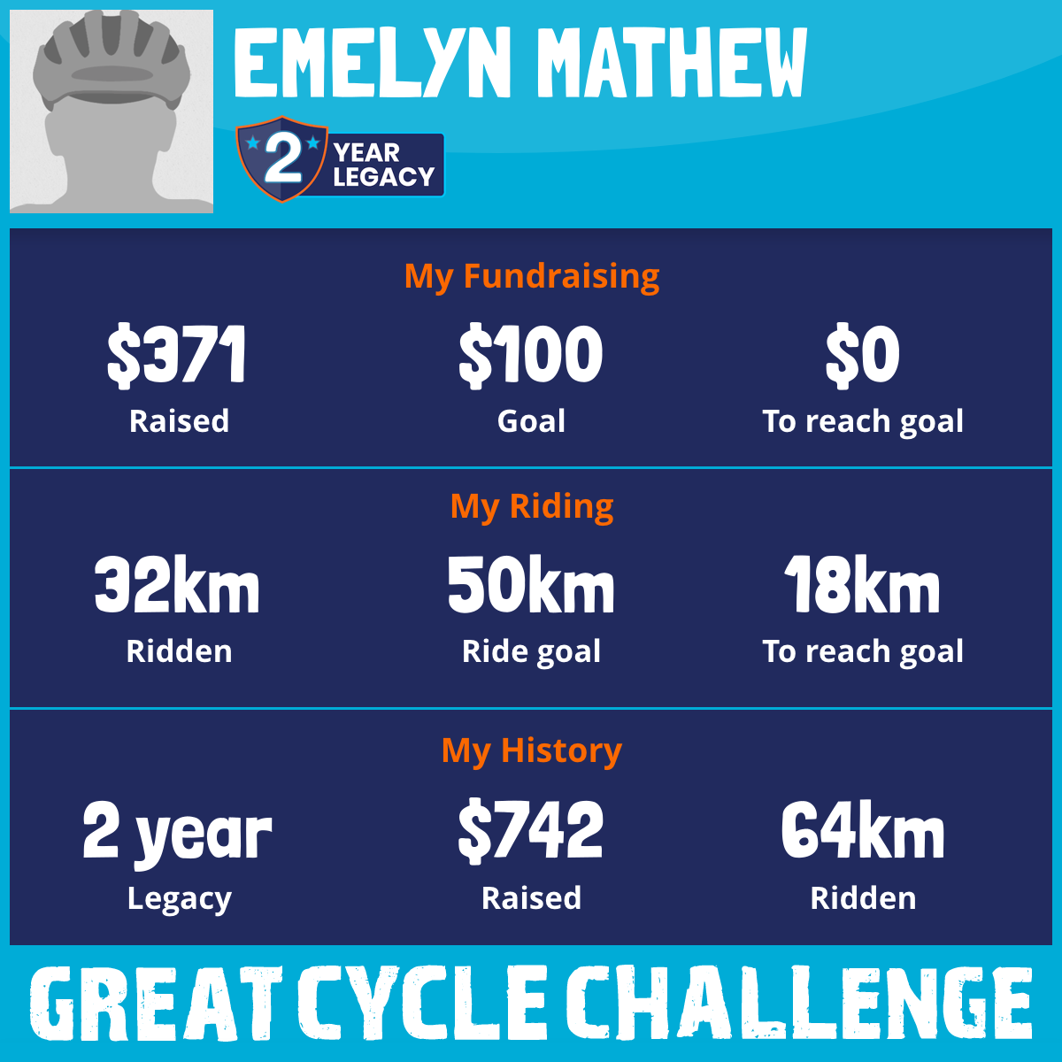 32 km Ridden$371 Raised2025