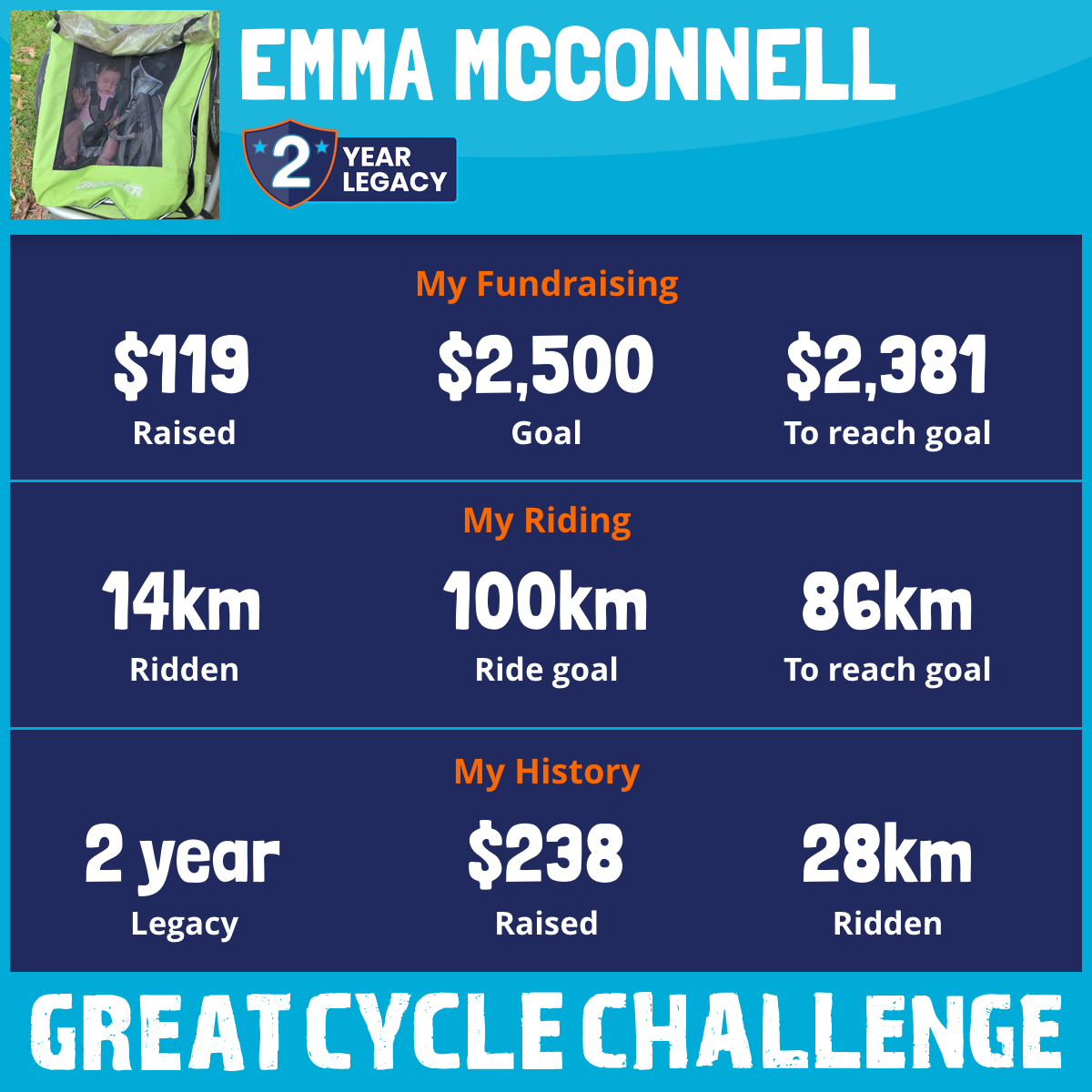 14 km Ridden$119 Raised2026