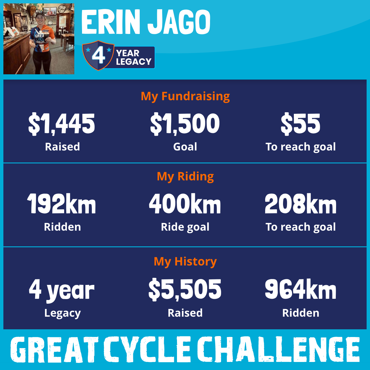 192 km Ridden$1,445 Raised2026