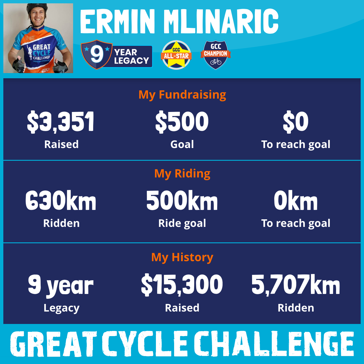 630 km Ridden$3,351 Raised2025