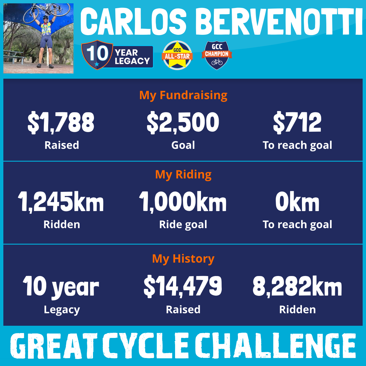 1,245 km Ridden$1,788 Raised2026