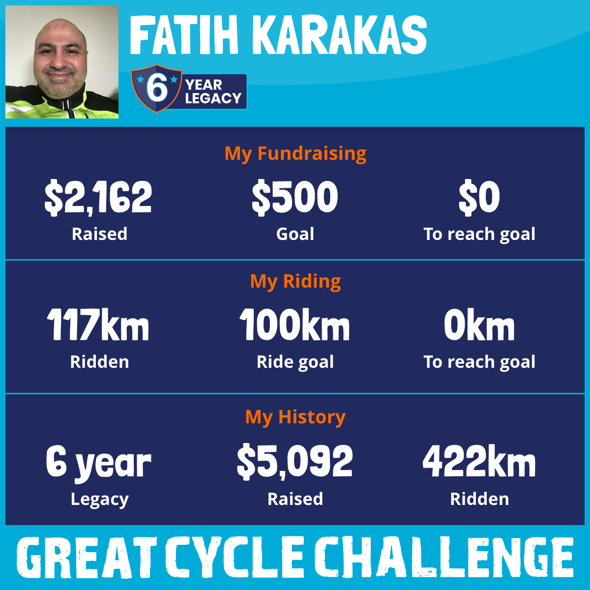 117 km Ridden$2,162 Raised2025