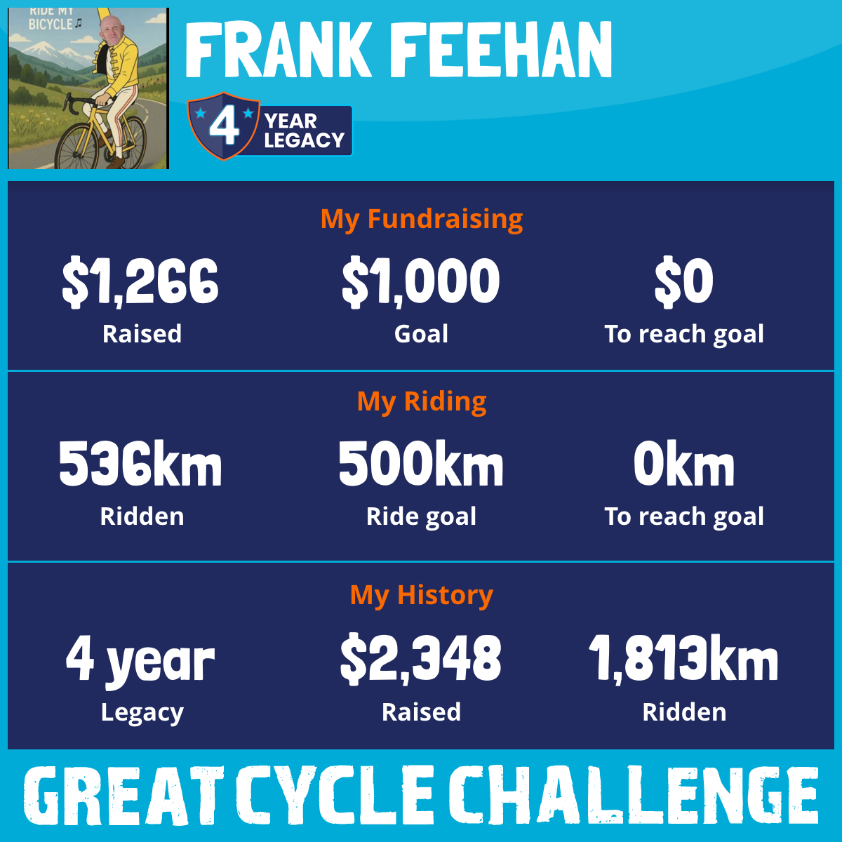 536 km Ridden$1,266 Raised2026