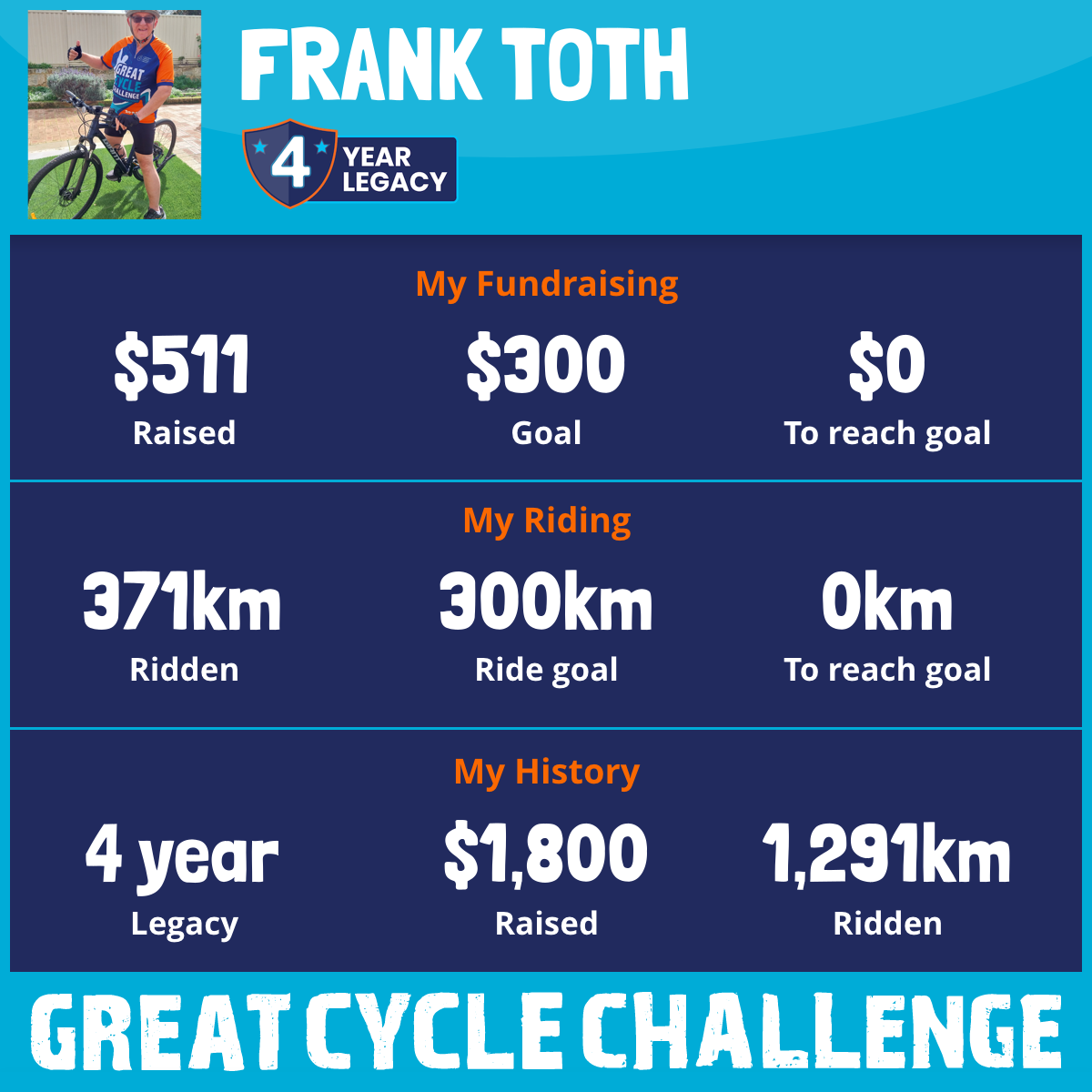 I am riding 500 km in memory of my brother-in-law Gordon. Please sponsor me and support my challenge to fight kids' cancer and save little lives.