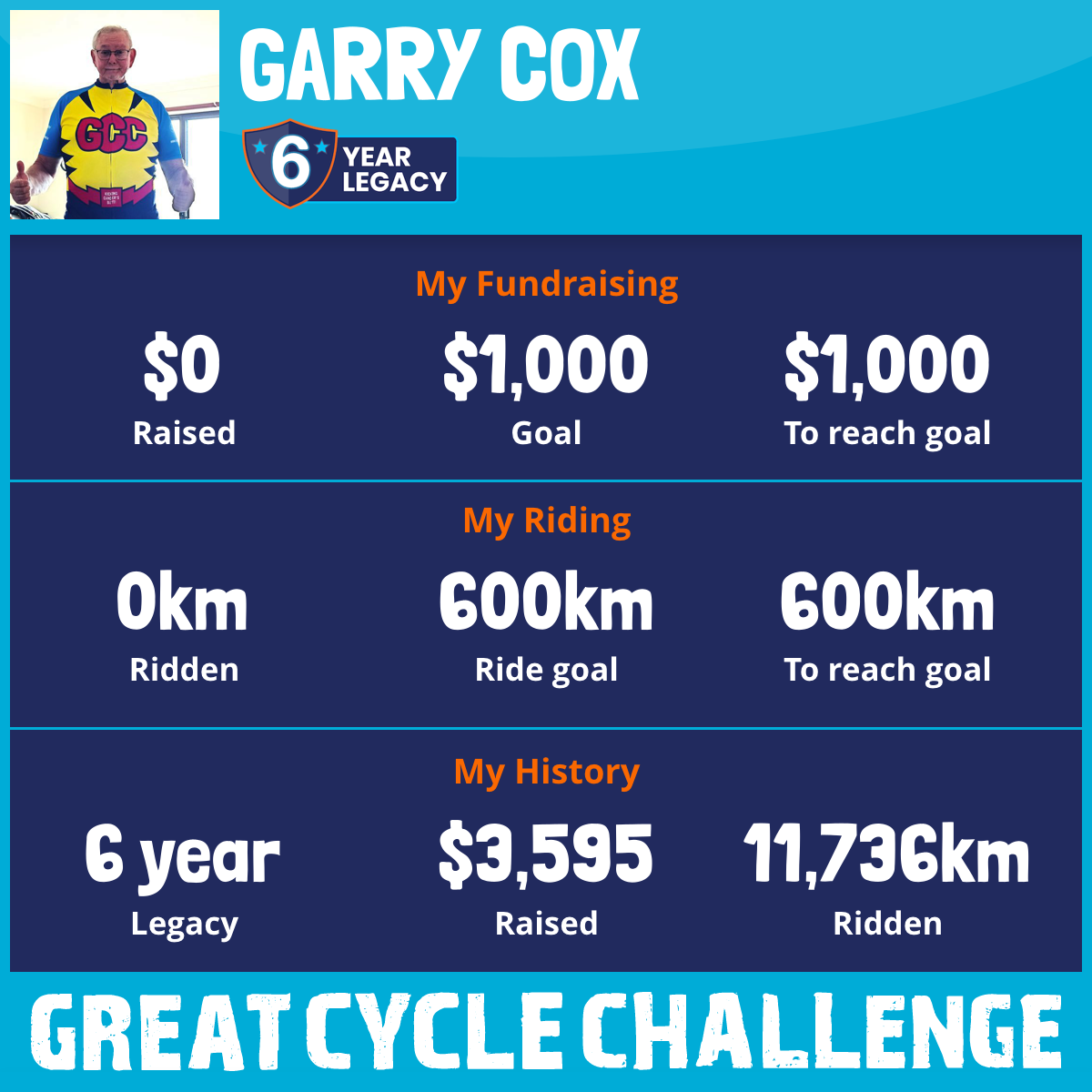 3,002 km Ridden$1,465 Raised2025