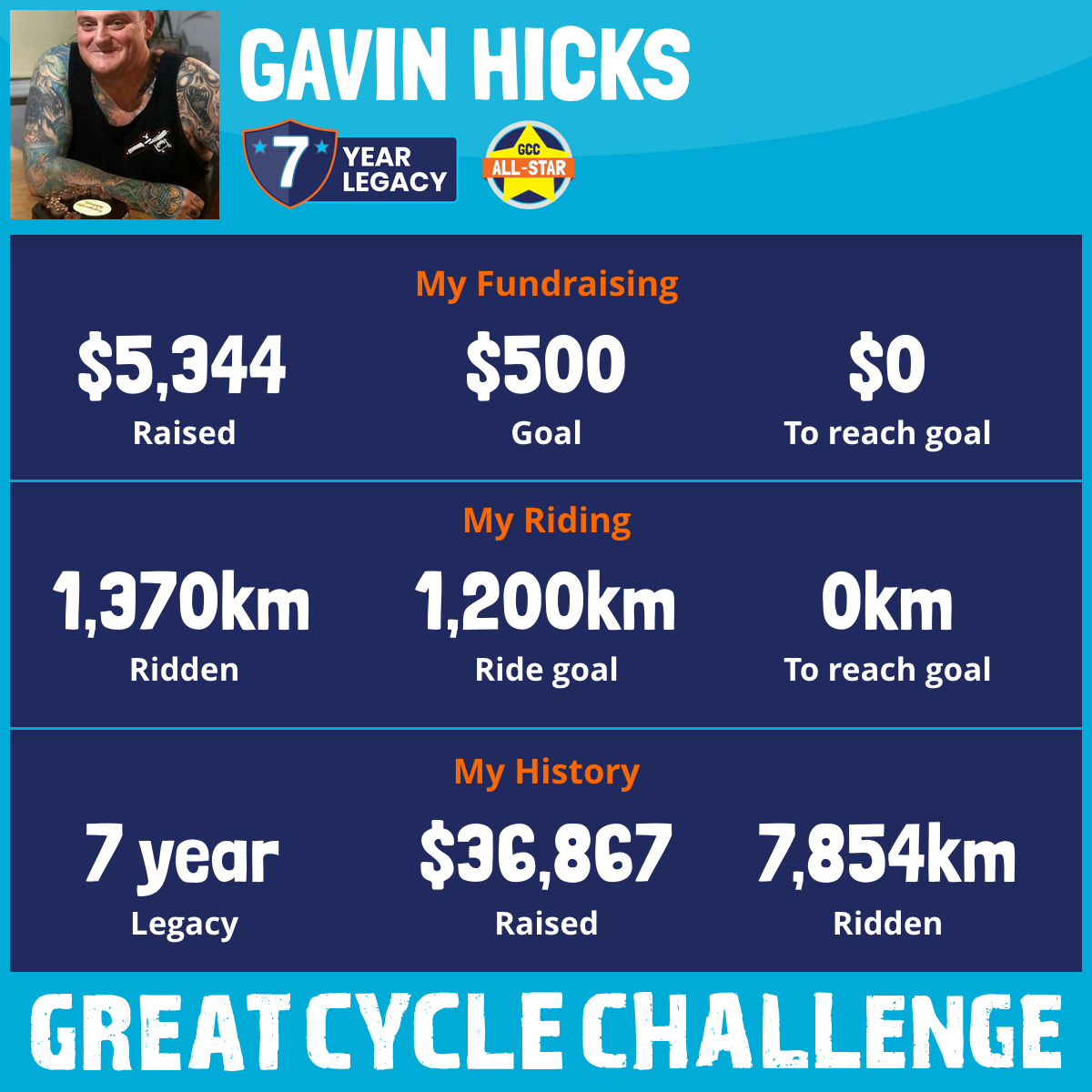 1,370 km Ridden$5,344 Raised2026