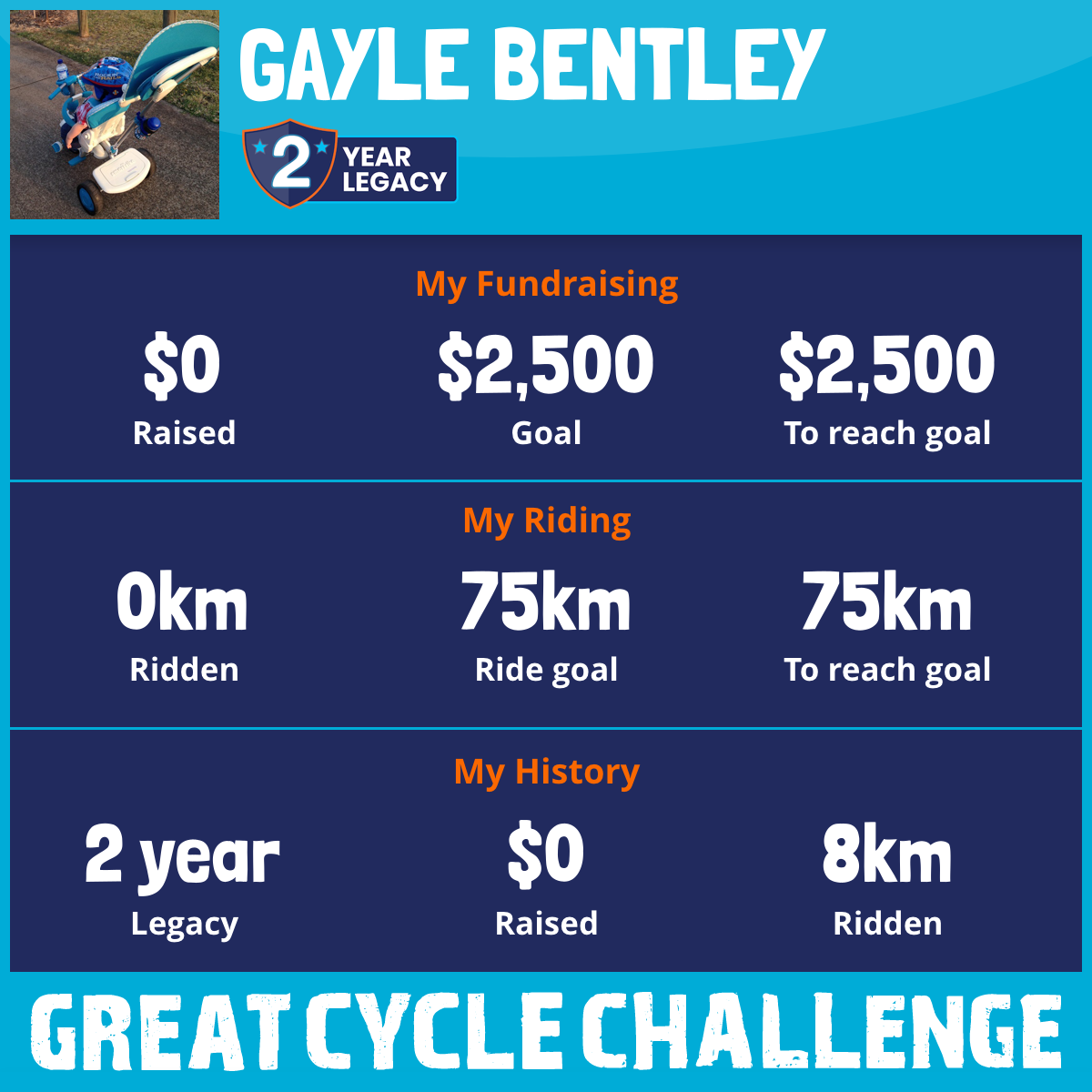 And so I am riding and raising funds to support the Children's Medical Research Institute to continue their work into the prevention, diagnosis, treatment and finding a cure for childhood cancer.