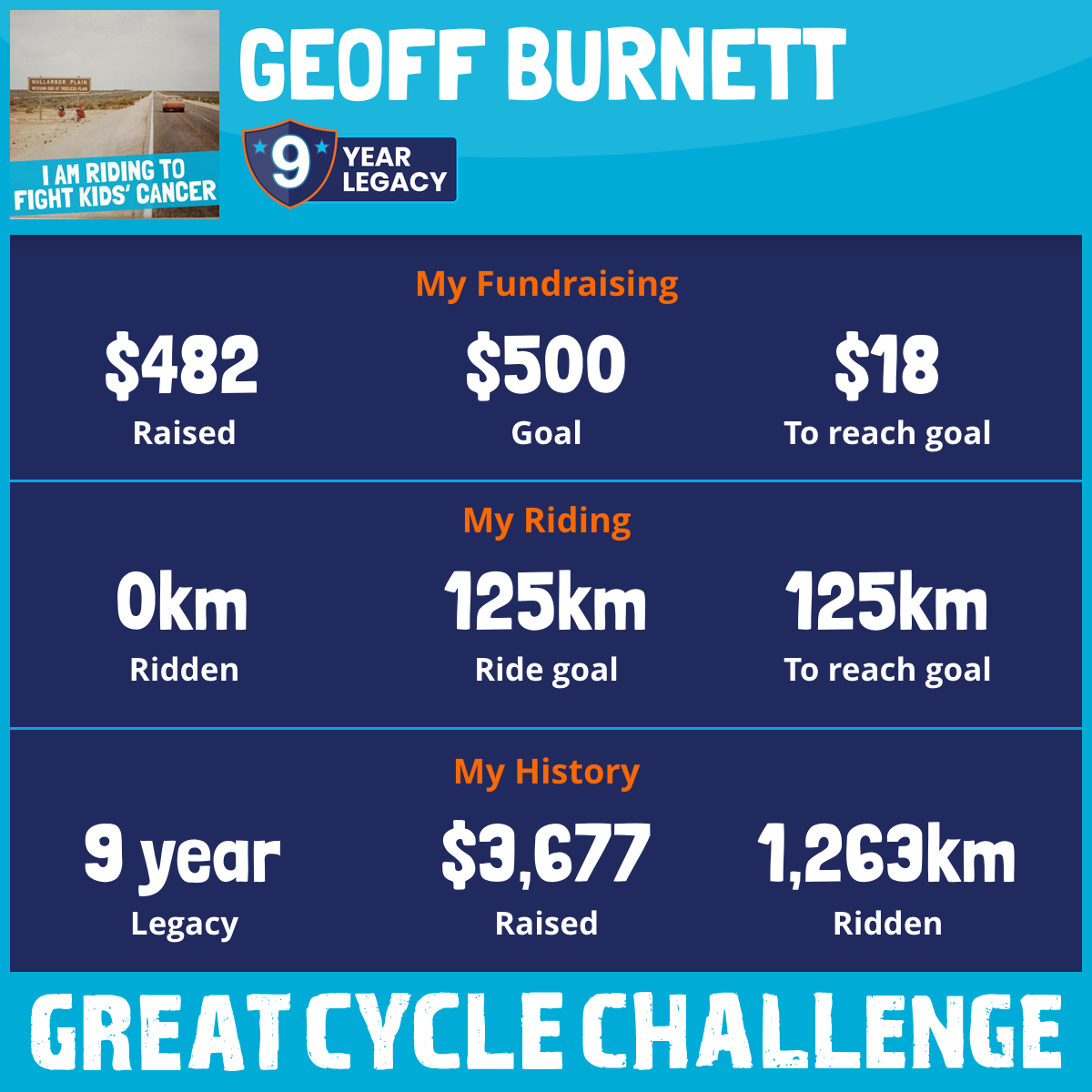 And so I am riding and raising funds to support the Children's Medical Research Institute to continue their work into the prevention, diagnosis, treatment and finding a cure for childhood cancer.