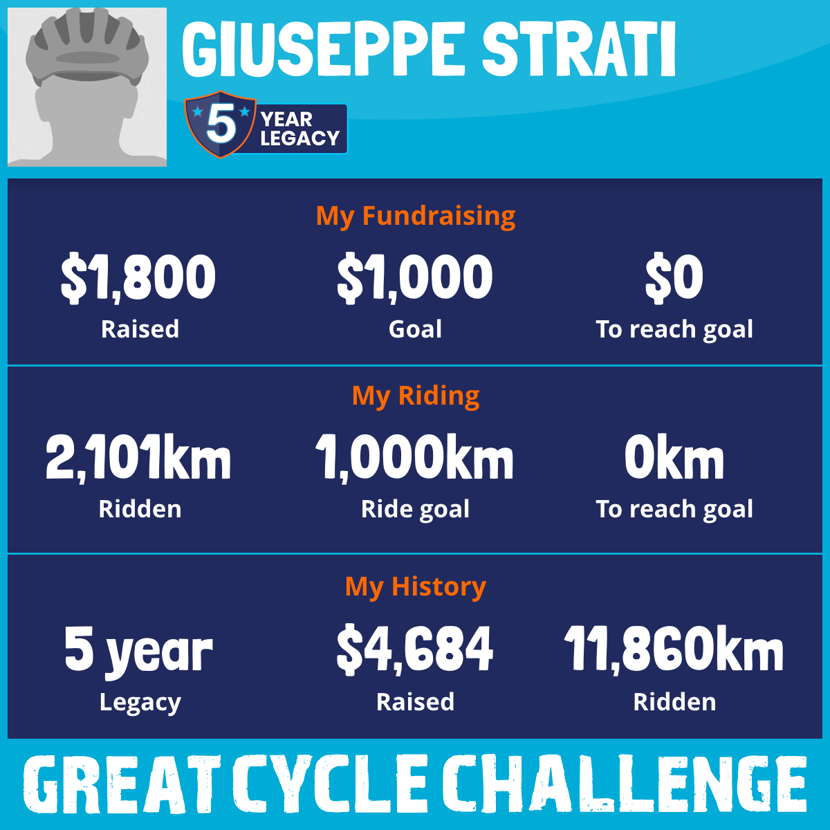 2,101 km Ridden$1,800 Raised2026