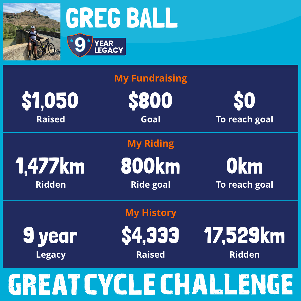 1,477 km Ridden$1,050 Raised2026