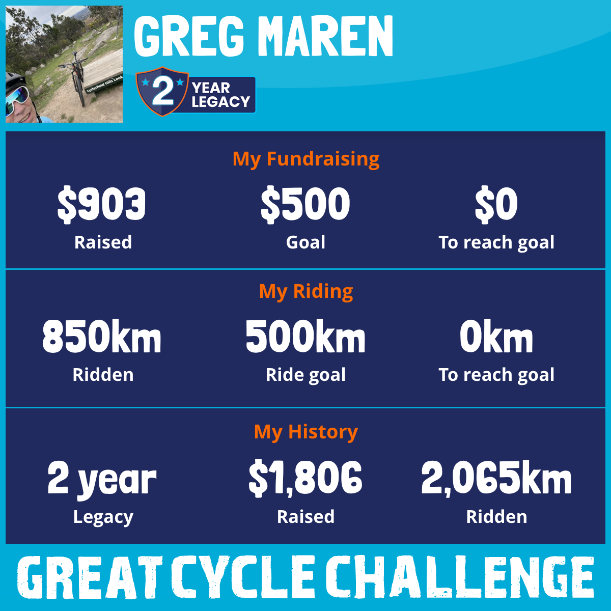 850 km Ridden$903 Raised2026