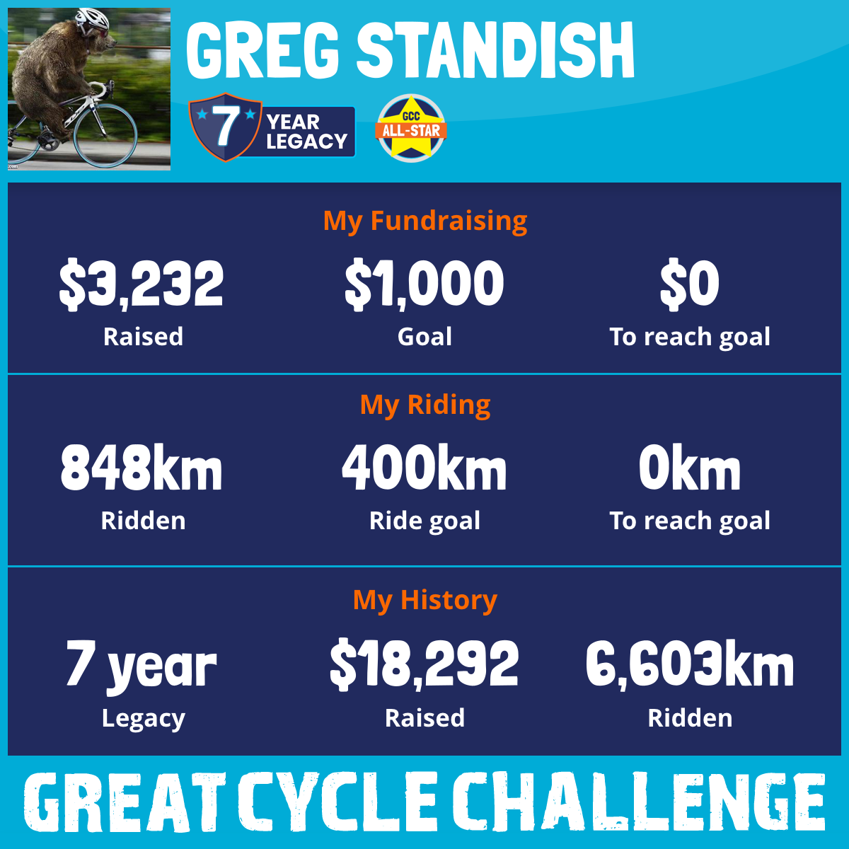 848 km Ridden$3,232 Raised2026