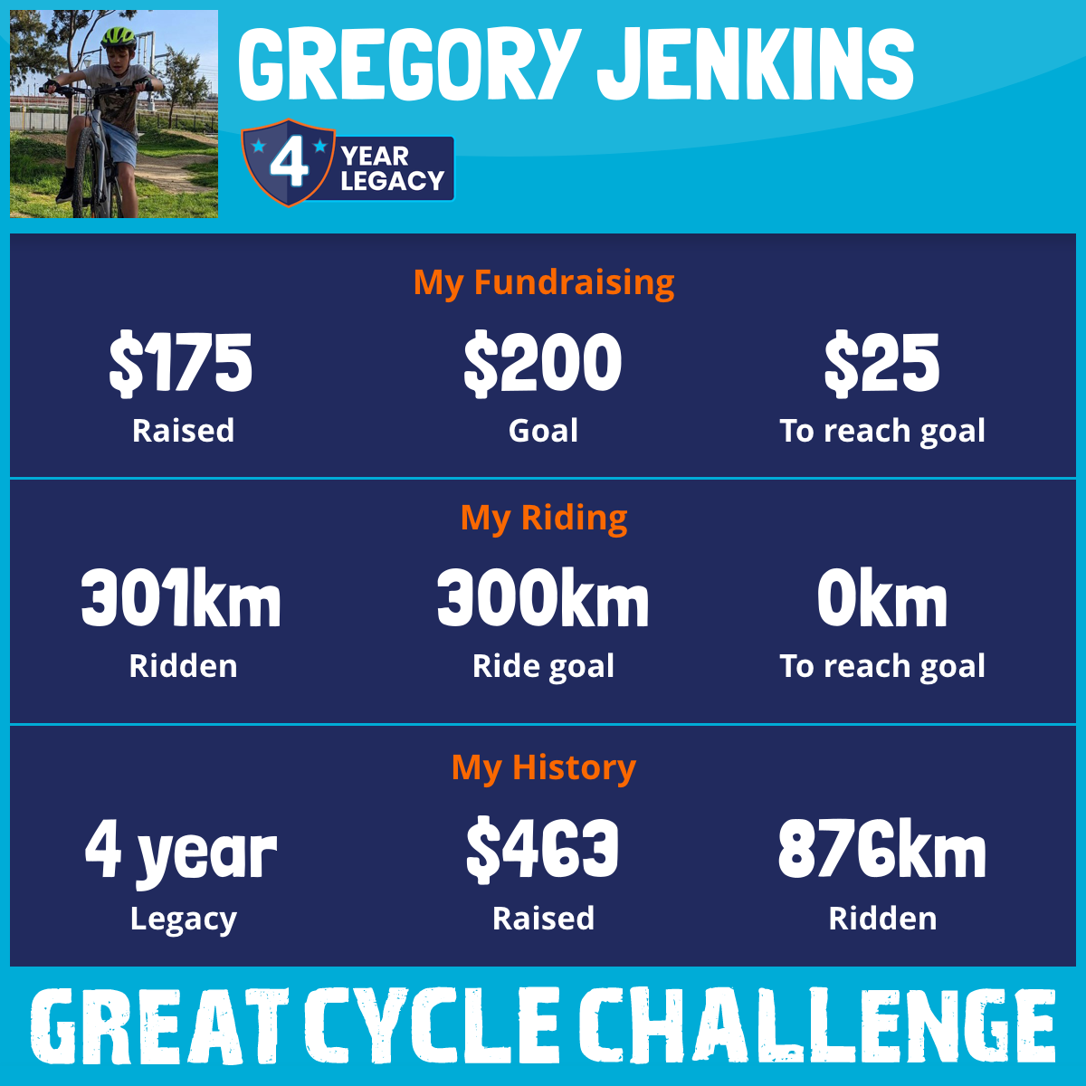 301 km Ridden$175 Raised2026