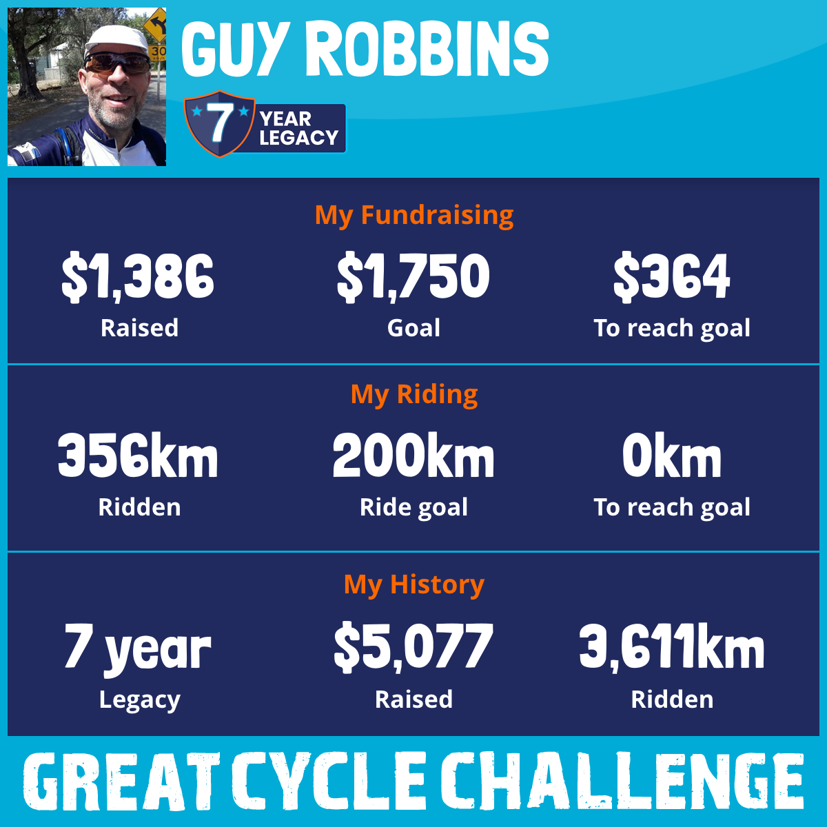 356 km Ridden$1,386 Raised2026