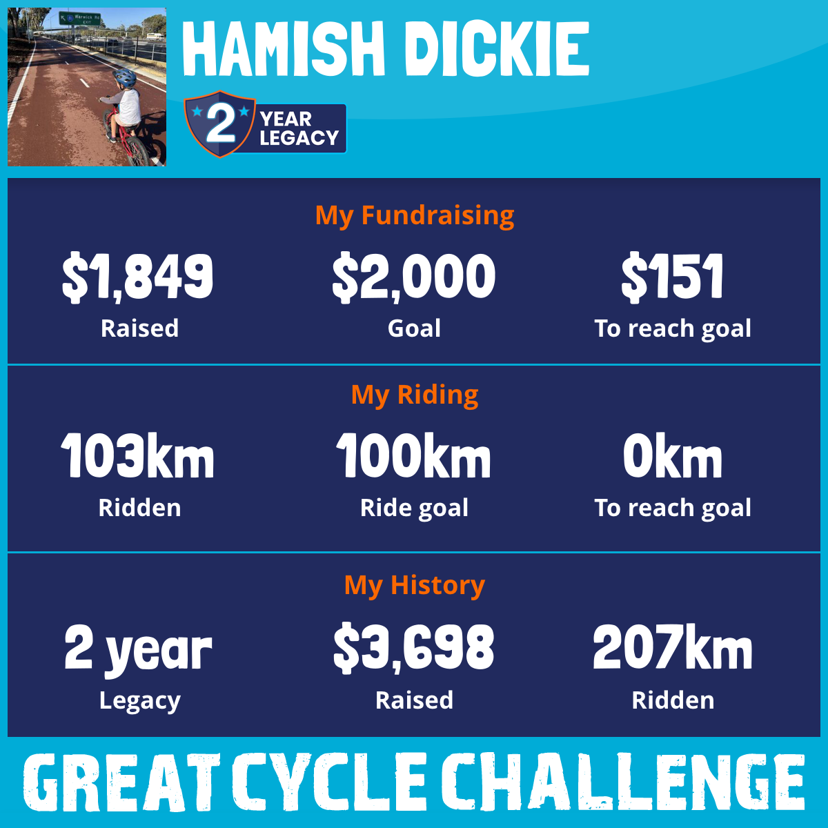 103 km Ridden$1,849 Raised2025