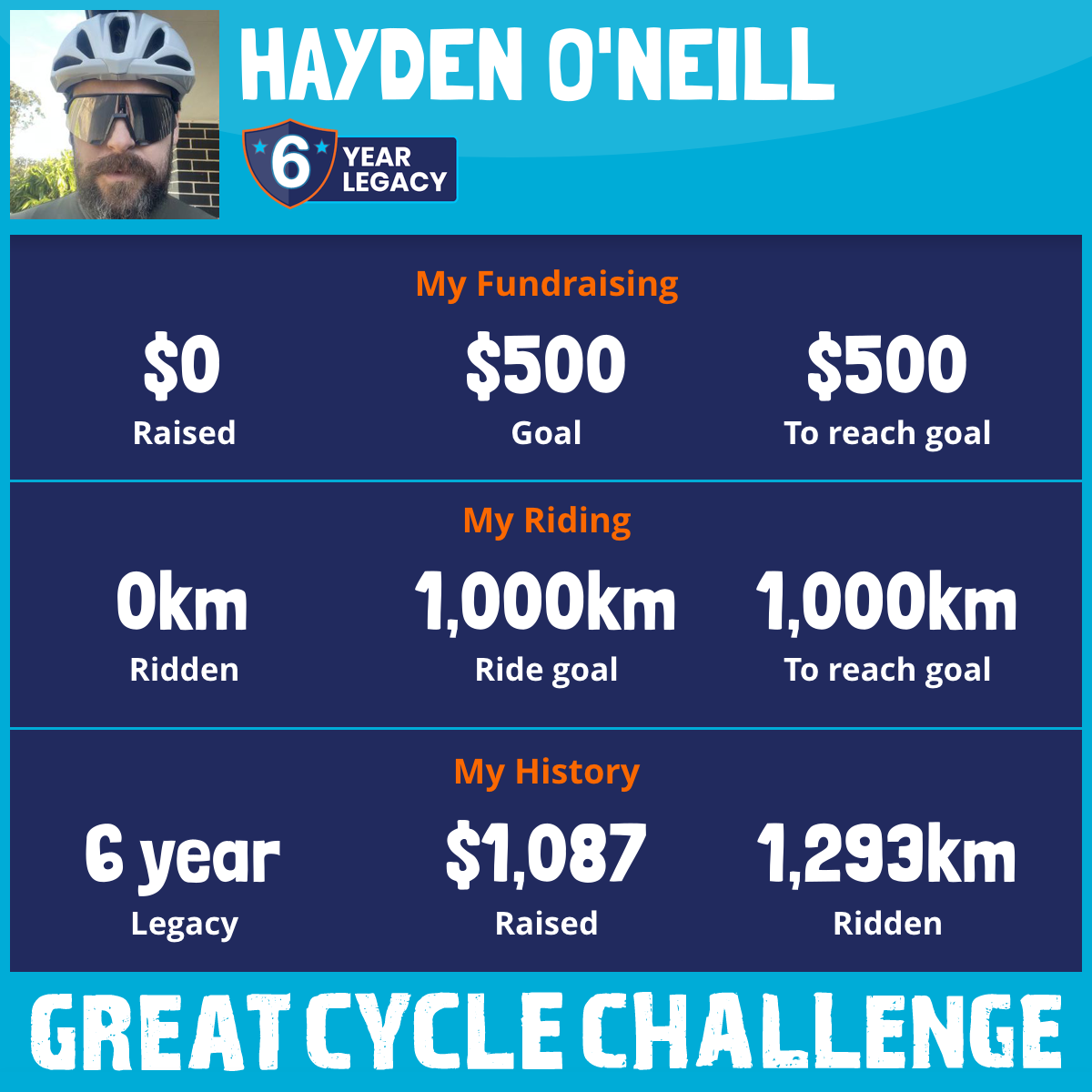 1,008 km Ridden$1,087 Raised2019