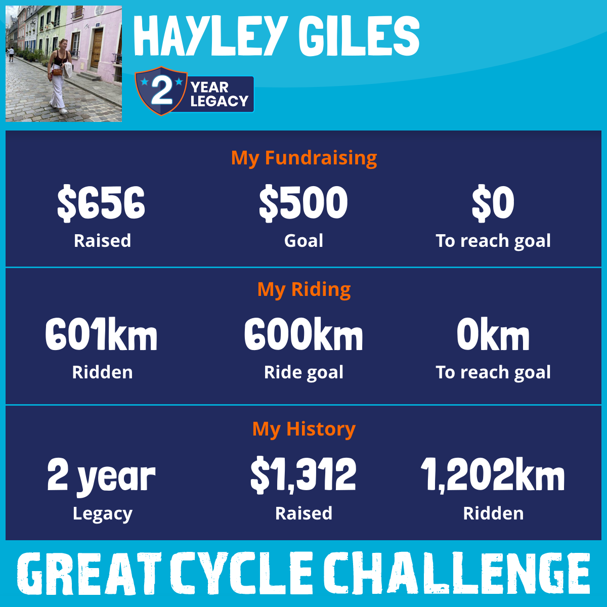 601 km Ridden$656 Raised2025