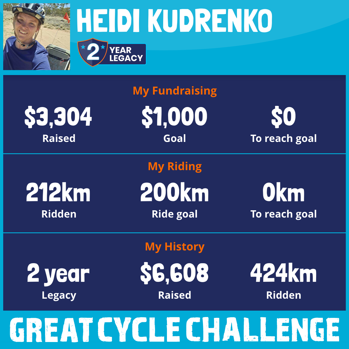 212 km Ridden$3,304 Raised2026