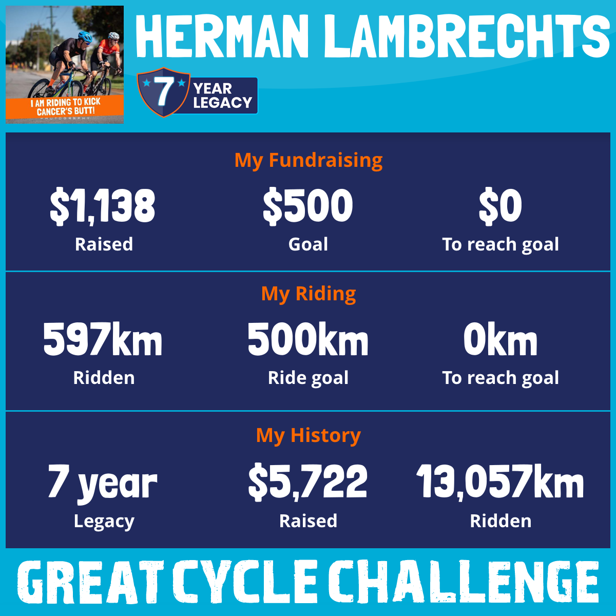 597 km Ridden$1,138 Raised2026