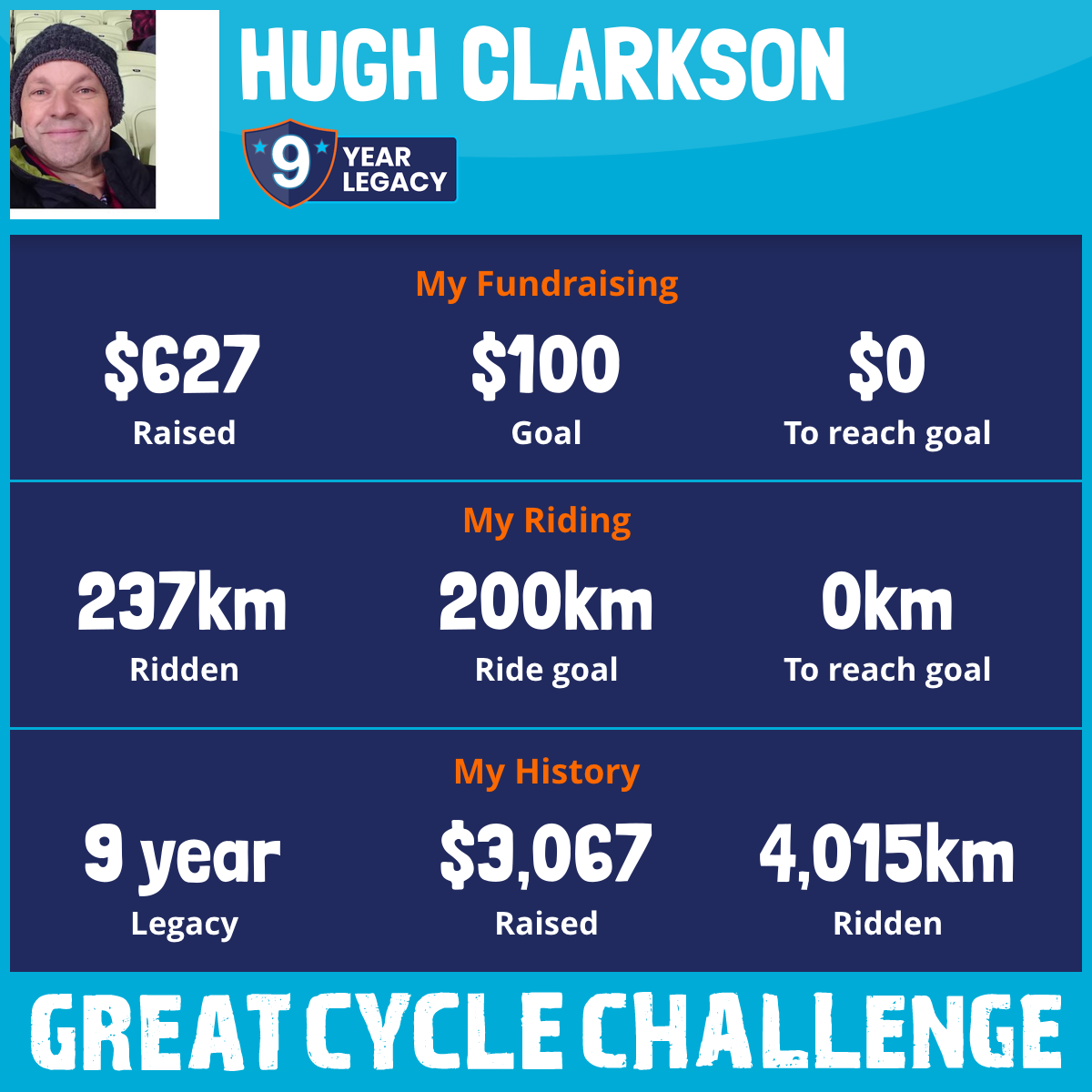 237 km Ridden$627 Raised2026