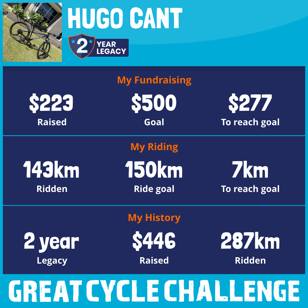 143 km Ridden$223 Raised2026