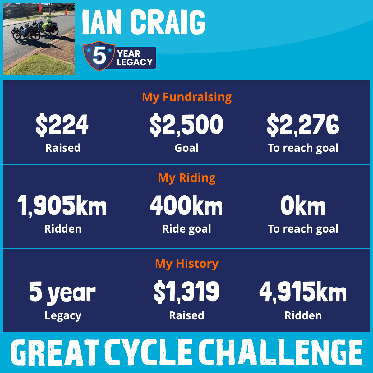 1,905 km Ridden$224 Raised2026