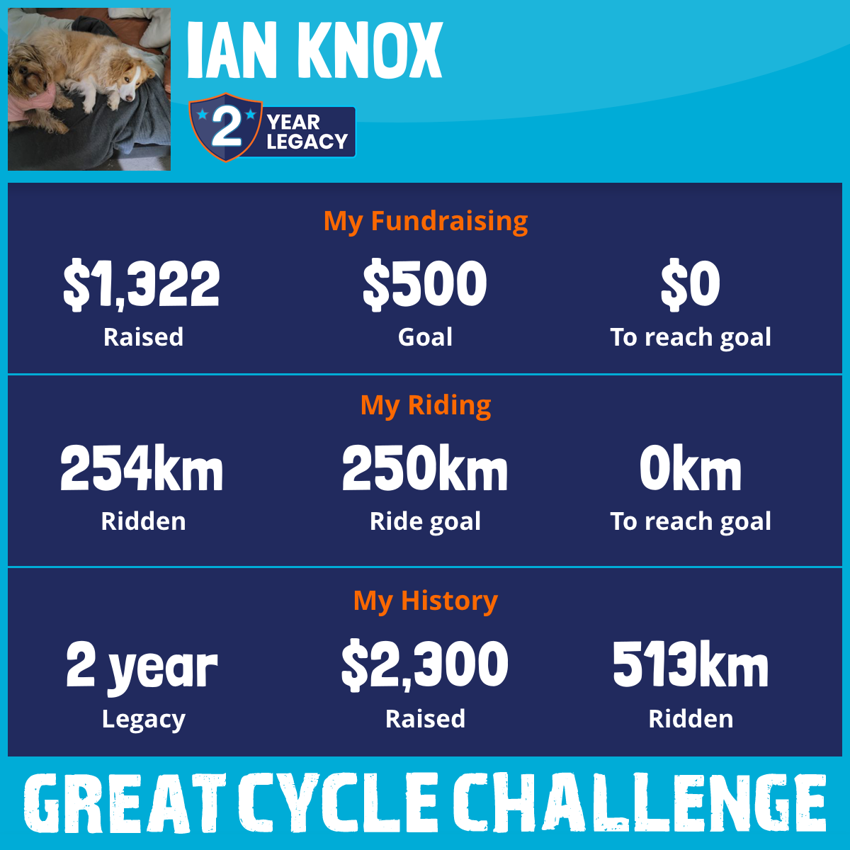 254 km Ridden$1,322 Raised2026