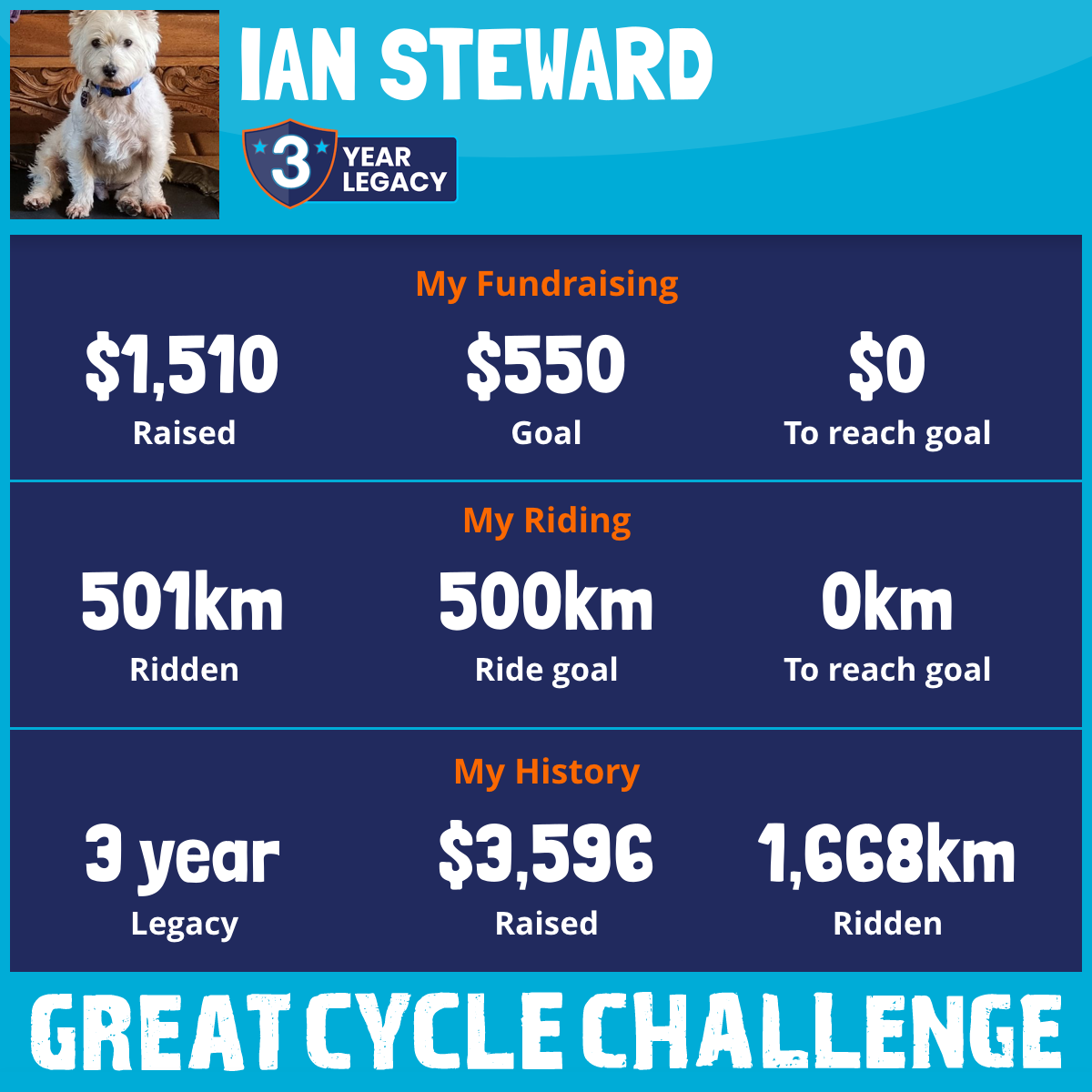 501 km Ridden$1,510 Raised2026