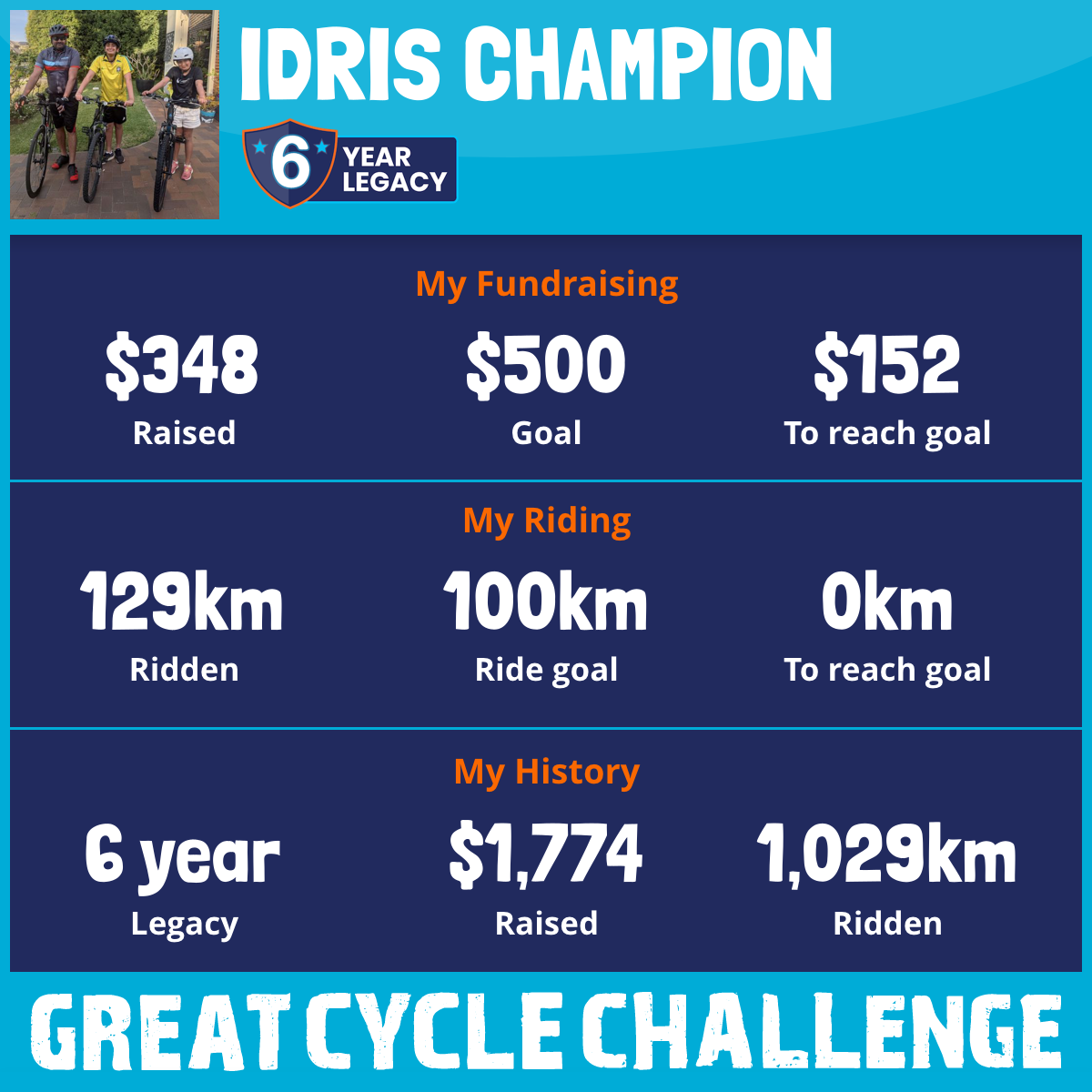 And so I am riding and raising funds to support the Children's Medical Research Institute to continue their work into the prevention, diagnosis, treatment and finding a cure for childhood cancer.