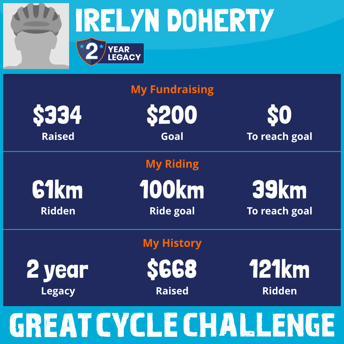 And so I am riding and raising funds to support the Children's Medical Research Institute to continue their work into the prevention, diagnosis, treatment and finding a cure for childhood cancer.