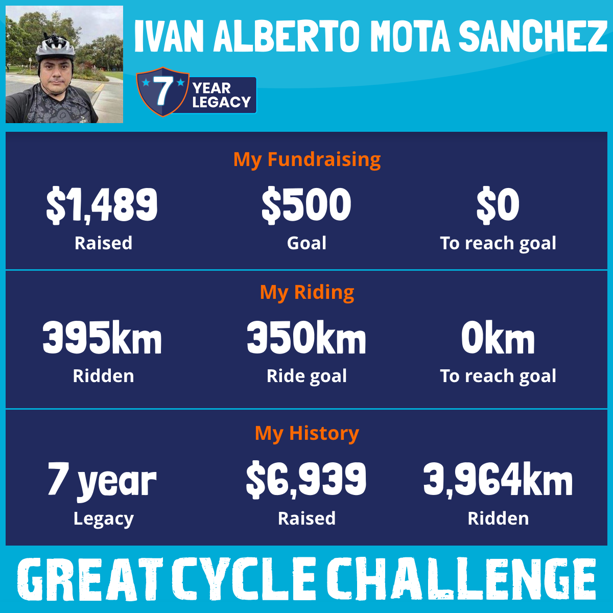 395 km Ridden$1,489 Raised2026