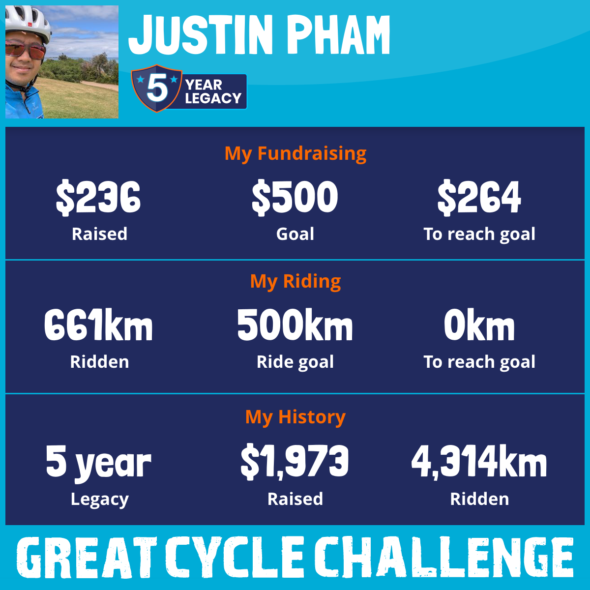 661 km Ridden$236 Raised2026