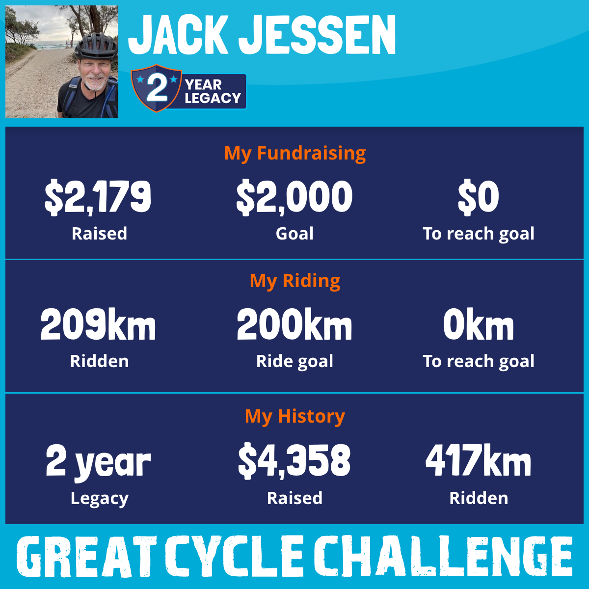 209 km Ridden$2,179 Raised2025